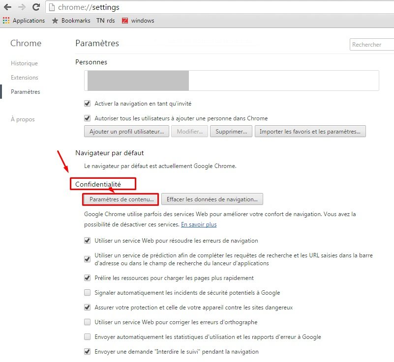 Sous Confidentialité, cliquez sur "Paramètres de contenu"