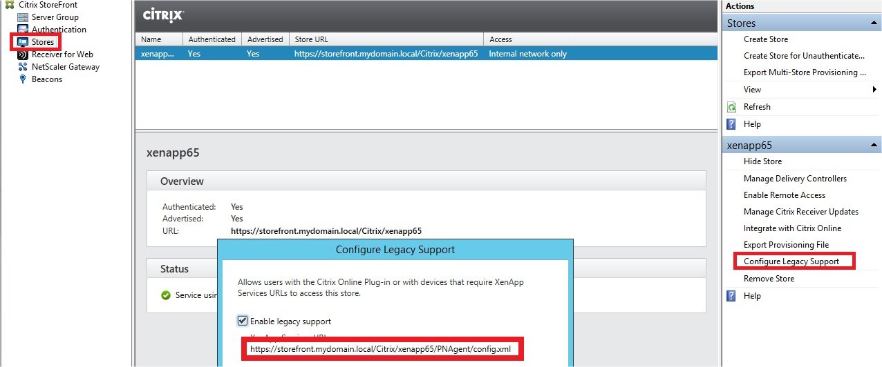 Au niveau du StoreFront, on a un Store avec le mode Legacy d'activé.