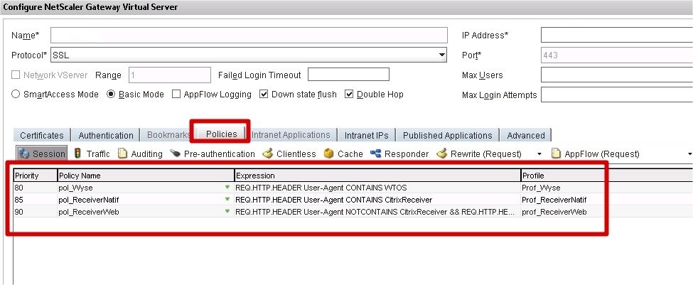 Configuring Session Policies and Profiles for CloudGatewayListe de headers à utiliser pour filter un netscaler