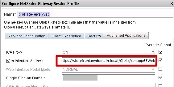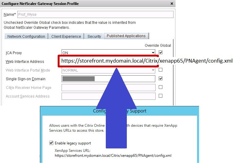 Sous "PublishedApplications", champ "Web Interface Address" on renseigne l'URL du legacy support de StoreFront
