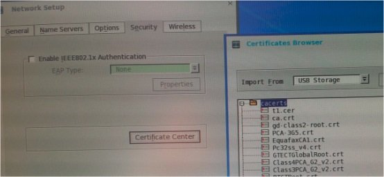Pour l'installer il faut aller dans le menu System Setup>Network Setup>Security>Certificate Center