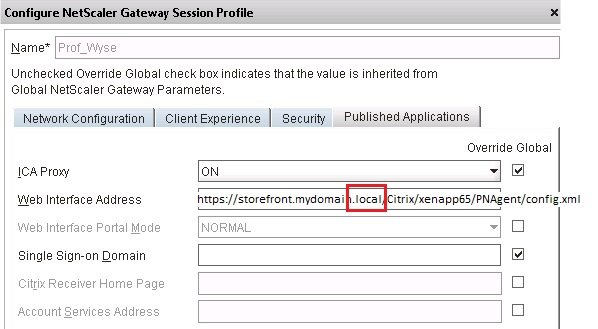 Quand on a une URL interne différente de l'adresse externe, c'est bien l'adresse externe qui est indiquée sur le client léger Wyse