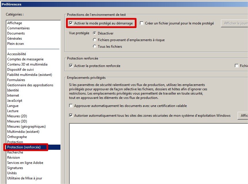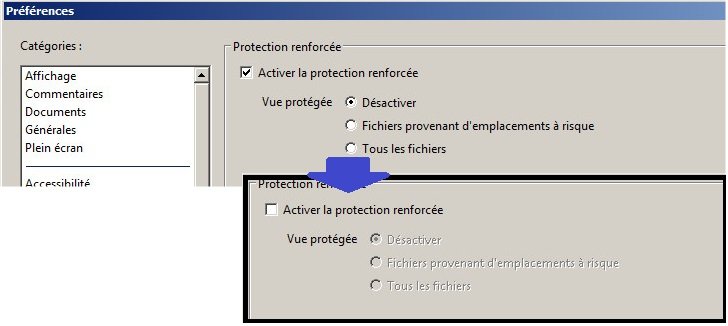 Il est indiqué qu'il faut, pour XenApp 5 et Adobe Reader V10, désactiver le mode protégé