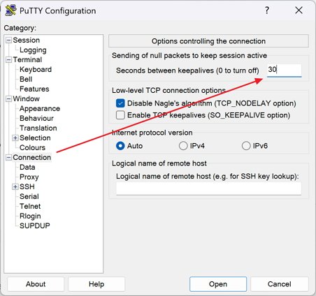 Côté client comme putty on peut par exemple régler Seconds between keepalives à 30