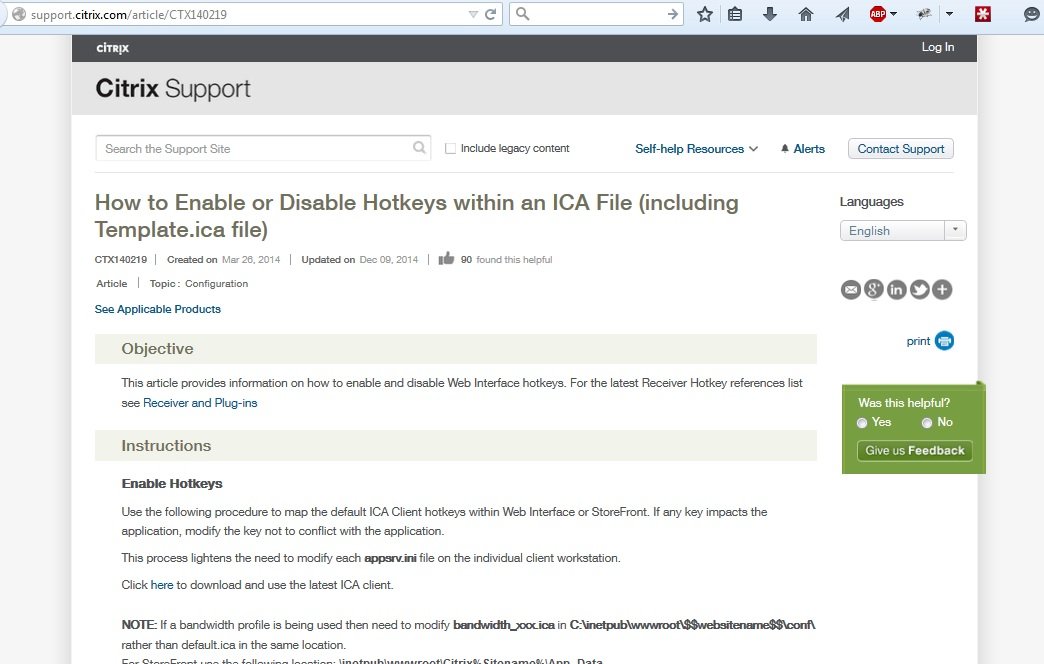 Activer / Désactiver les HotKeys du client Citrix