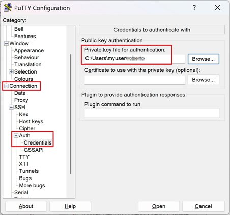 Connection>SSH>Auth>Credentials le chemin vers votre clé privée