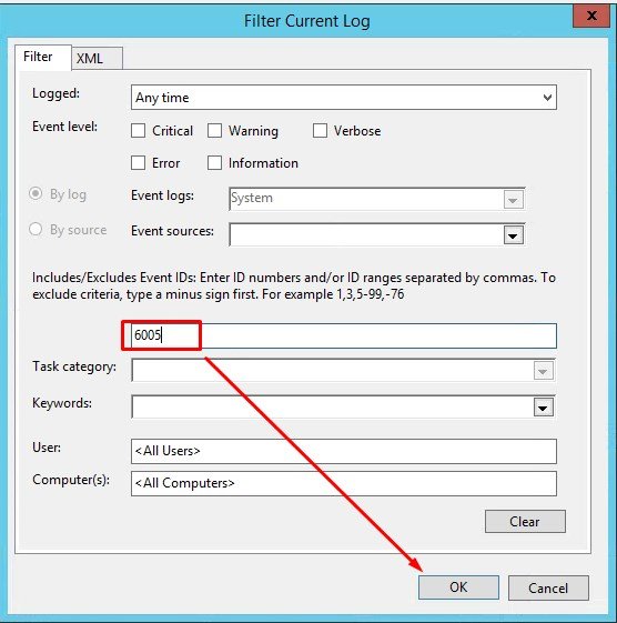 L'event 6005 correspond au démarrage du service des logs, le 6006 correspond à son arrêt.