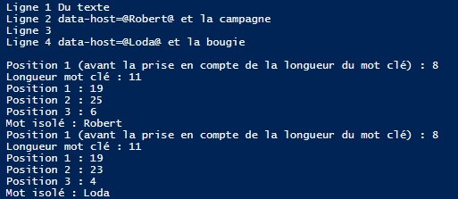 Write-host "Position 1 (avant la prise en compte de la longueur du mot clé) : $($Position1)"