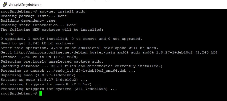 il faudra ensuite ajouter votre utilisateur au groupe sudo.