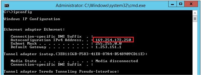 Cependant la commande ipconfig indique une adresse ip différente qui commence par 169.254