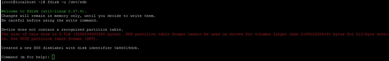 Si on utilise fdisk, il indique qu'une partition DOS ne peut pas gérer au delà de 2To. Il recommande d'utiliser GPT