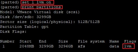 Activez LVM en tapant cette commande. Le 1 correspond au numéro de notre partition