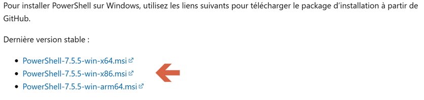 Sur https://learn.microsoft.com/fr-fr/powershell/scripting/install/install-powershell-on-windows?view=powershell-7.5#msi cliquer sur le msi voulu ...
