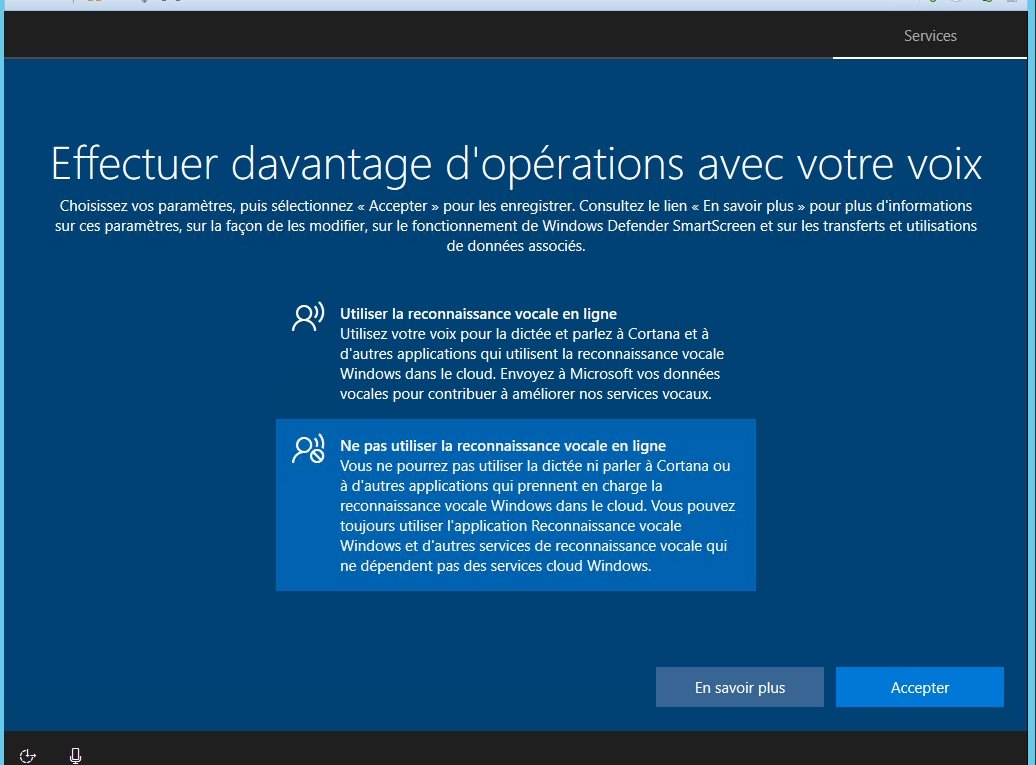 Image indiquant comment ne pas avoir de reconnaissance vocale au paramétrage de Windows 10