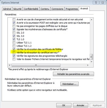 Rustine pour contourner le message d'erreur Revocation information for the security certificate for this site is not available