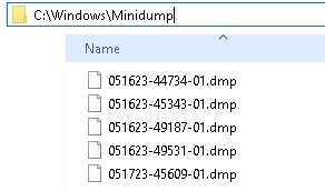 Sur la machine qui a crashé, à priori les petits dumps sont dans C:\Windows\Minidump