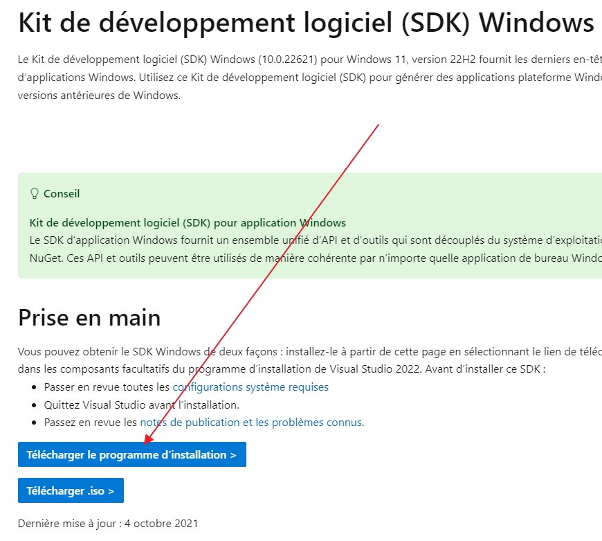 Il faut télécharger le Télécharger le Windows Driver Kit (WDK)