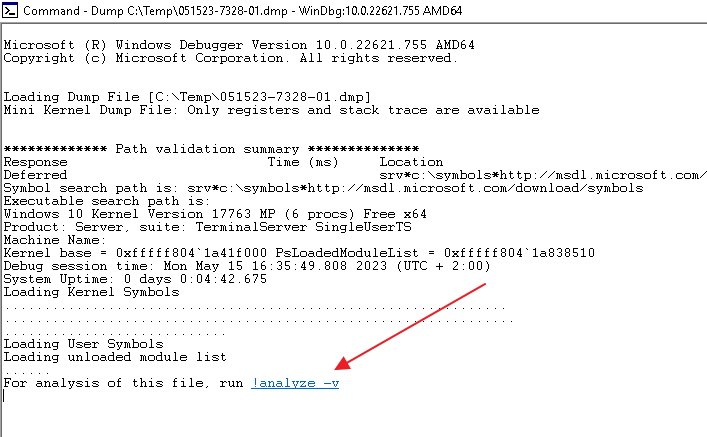 windbg.exe -y srv*c:\symbols*http://msdl.microsoft.com/download/symbols -z "C:\Temp\051523-7328-01.dmp"