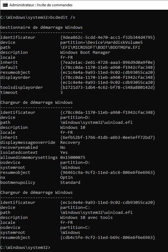 Bcdedit permet de visualiser les options de Windows proposées au boot