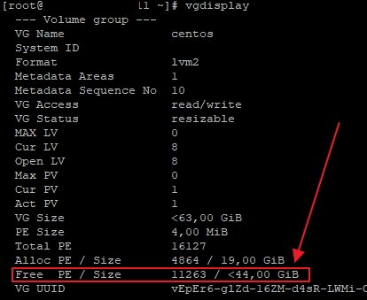 /dev/sda2 centos lvm2 a-- <63,00g <27,00g