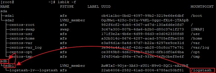 /dev/sdb1 logstash lvm2 a-- <500,00g 0