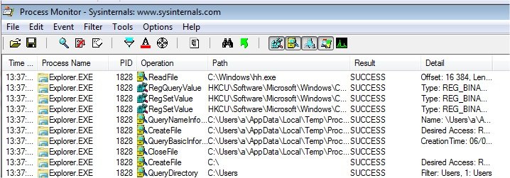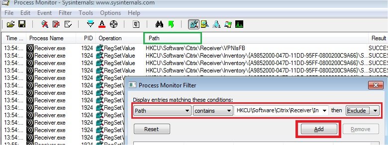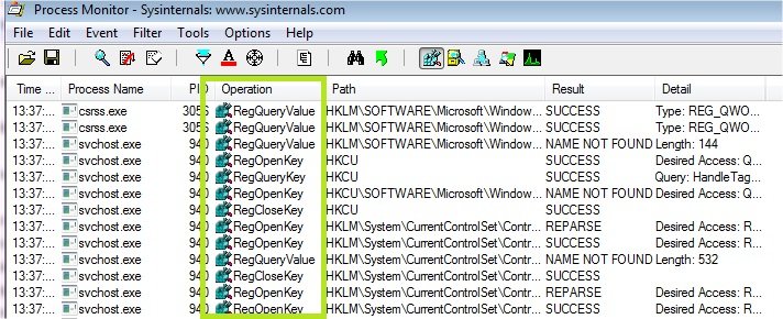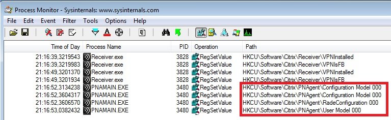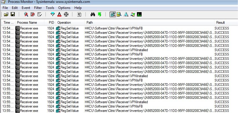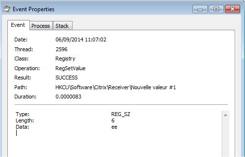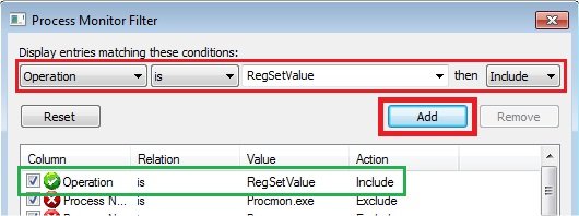 Operation is RegSetValue pour ne voir que les écritures dans le registre
