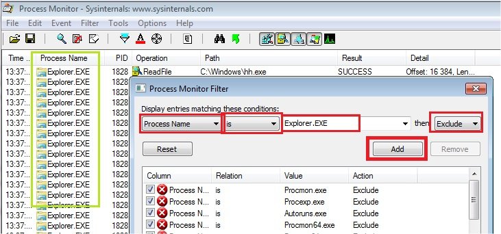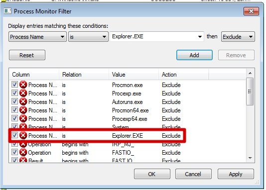 Sauf si c'est votre cas, Explorer.exe n'est pas un processus qui nous intéresse. On va donc l'exclure en procédant comme montré ici