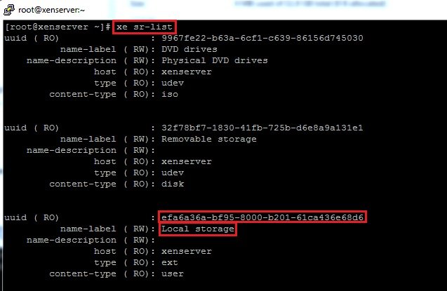 These commands will destroy your existing local SR, and VMs on the SR will be permanently