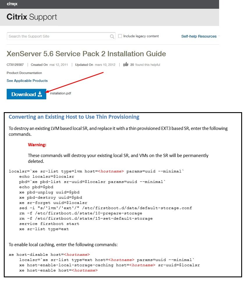 L'article CTX129387 de Citrix pour le XenServer 5.6 Service Pack 2 Installation Guide donne un script à dérouler