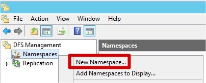 Lancez la console de gestion en allant dans Tools puis DFS Management