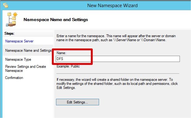 Donnez un nom à votre racine DFS puis cliquez sur Next